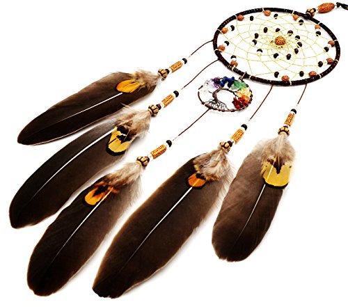 Indian Dream Catcher Handmade Tree of Life Dream Catchers with Feathers Wall Hanging Home Decor Dia 5.1"(NO.12)