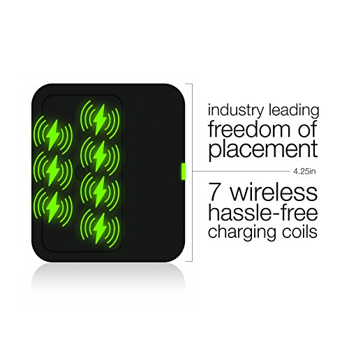 CHARGING FREEDOM: Cordless charging. Slim design. 7 coils for freedom of placement - most coils of any Qi charger currently on the market. Just drop your Qi enabled phone or smart watch on the charging pad and your device will wirelessly charge. Apple iPhone case available to enable wireless iPhone charging. Works for Samsung Galaxy S6, S7, Gear 2, Note 5, Google Nexus, LG G3, HTC 8X, and other Qi enabled devices.