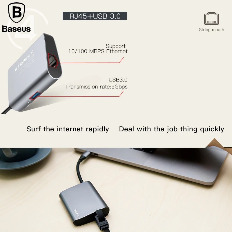 Baseus USB Type C 3.1 HUB For Type C to USB 3.0 and RJ45 Ethernet High Speed USB HUB For MacBook Pro Laptop PC OTG Hub Adapter