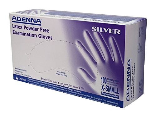 Adenna Silver 5.5 mil Latex Powder Free Exam Gloves (White, X-Small) Box of 100