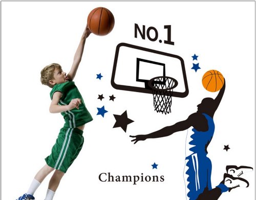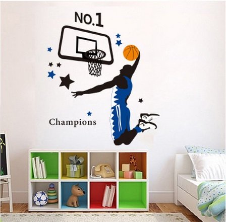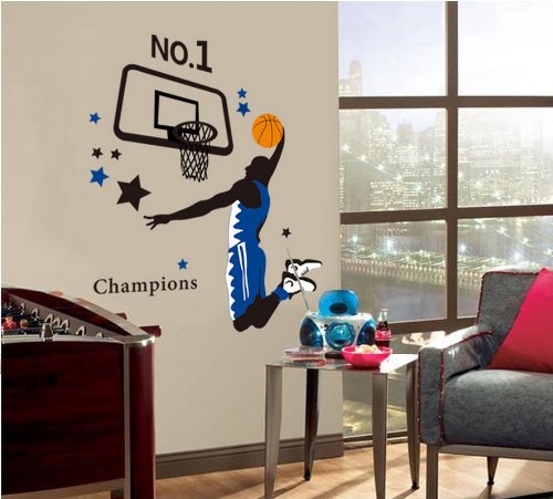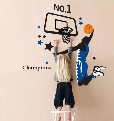 -. Title : Kappier Giant Jumping Basketball Superstar - I Am a Champion Peel & Stick Wall Decals