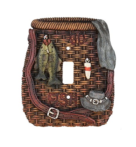 Fishing Single Wall Switch Plate Electrical Cover Wicker Creel Bass Trout Perch Walleye Fish