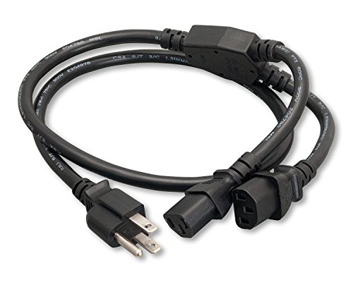 Cablelera AC Power Splitter Cable NEMA 5-15P 2x IEC-320-C13 SJT 6' AC power splitter cord, Black (ZADA37MC-06)