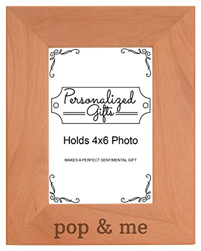 Grandpa Gift Pop and Me Grandchild Natural Wood Engraved 4x6 Portrait Picture Frame Wood