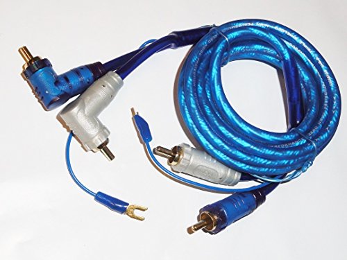 - 15 Feet Right Angle RCA Audio Jacks with Integrated Remote Blue Turn On Wire.