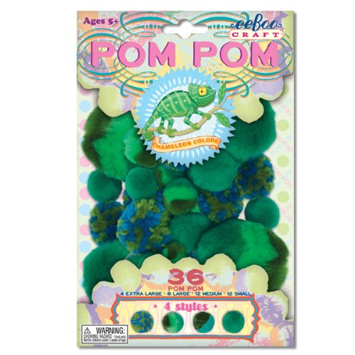 - Feature : 4 Pom Pom Styles / 36 Pom Poms; 4 Extra Large / 8 Large, 12 Medium, 12 Small / Pom Pom Project Ideas on the back