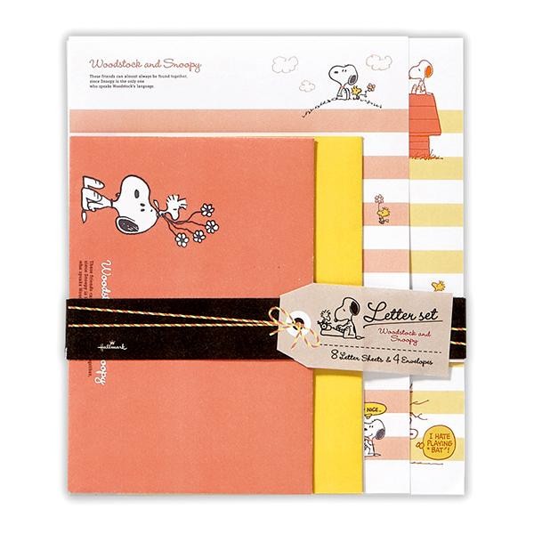 スヌーピーとウッドストックを描いたレターセットです。ストライプ柄のレターが爽やかです。 |
