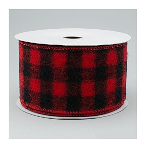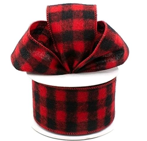 Wired Buffalo Plaid Ribbon, 2.5" Wide x 10 Yards, Red Black Flannel