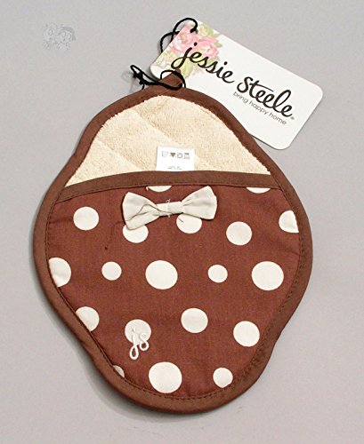 Jessie Steele Brown and White Retro Polka Dot Scalloped Pot Mitt with Bow