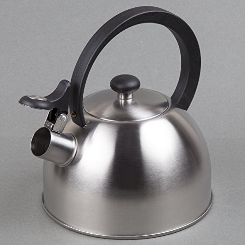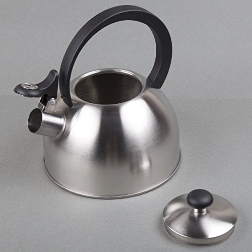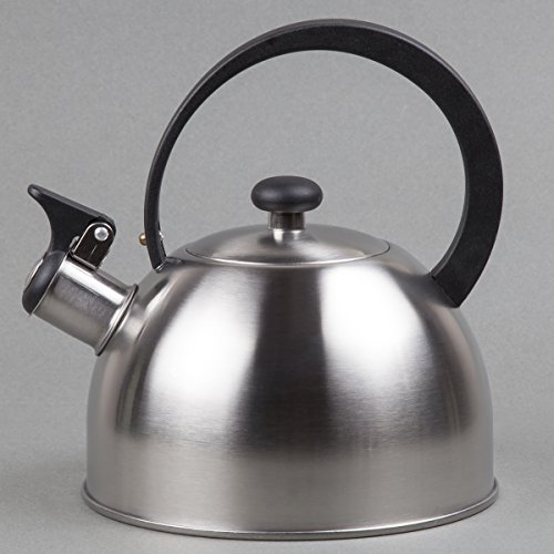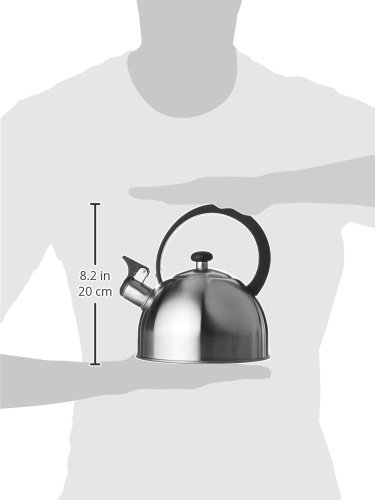 Creative Home Stainless Steel Tea Kettle Features Insulated handle with easy pour and fill. Whistle that is loud for safety. Hand wash only. Just rinse to clean. Capacity: 2.1 qt. / 67 oz. Construction: -High quality stainless steel construction. Color/Finish: -Powder coated paint with lacquer finish. Rich deep color. Dimensions: -Dimensions: 8.5'' H x 7.5'' W x 7.5'' D.Feature