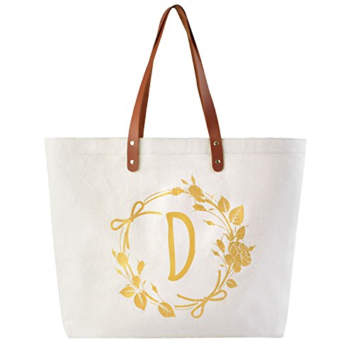 - Monogrammed tote initial D with high quality gold script in circle wreath