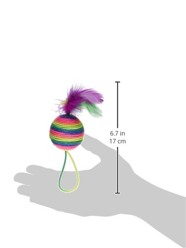 -. Feature : Made with bright colored rope / Bright feathers attract cat / Cat will want to play for hours / Encourages exercise through batting, kicking and pouncing fun / Rainbow Feather Balls come in 2 pc pack