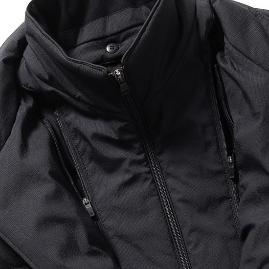 - 스탠 카라 디자인에 접으면 테일러드 라펠로 변형이 용이.