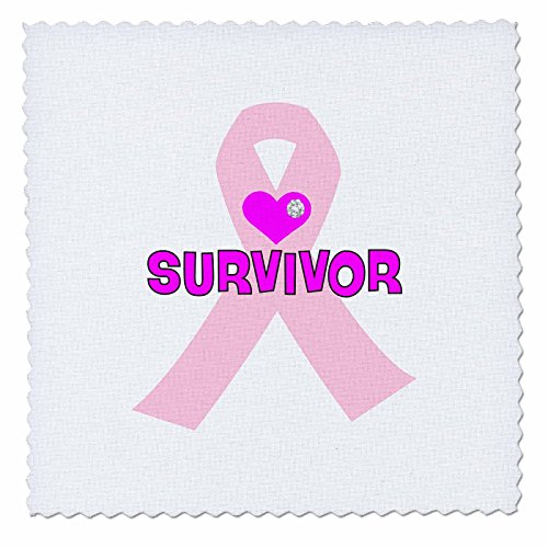 3dRose Pink Ribbon with The Word Survivor and A Heart and Diamond Effect - Quilt Square, 8 by 8-Inch (qs_211126_3)