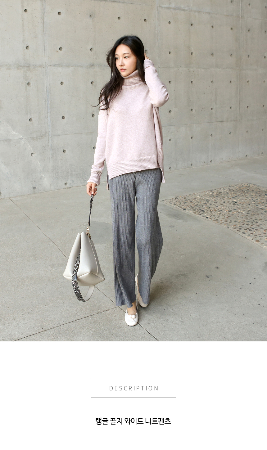 탱글탱글 짜임의 골지와이드 니트팬츠 비스코스 혼방으로 탱글탱글한 촉감이 무게감있게 툭 떨어지는 소재감이 좋은 니트 와이드팬츠랍니다 부드럽고 텐션감 좋은 원사의 촘촘한 짜임으로 한겨울까지 따듯하게 입기 좋고 밀도높은 소재감이 니트팬츠라도 군살을 커버해주며 굵은 골지짜임이 더욱 슬림해보여요 짧지 않아 단정하고 겨울시즌에 잘 맞는 길이감으로 편안하고 포근한 데일리 아이템으로 추천드려요 색상은 크림, 그레이, 브라운, 블랙사이즈는 FREE 44~66반까지 추천해요 **드라이 클리닝 권장, 건조기 사용은 안돼요~!! ▼ 관련상품 : 파비앙 언발 울 터들니트 미드 울터치 보송 코튼셔츠