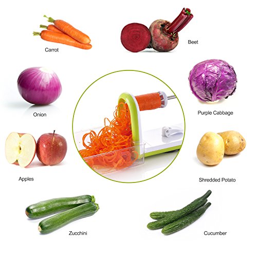 - Large, foolproof suction pad with easy ON/OFF lever to keep the spiralizer steadfast during operation