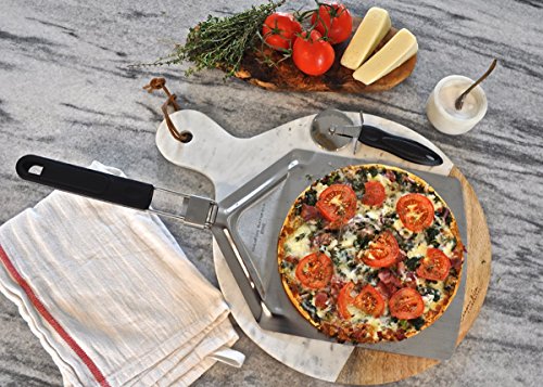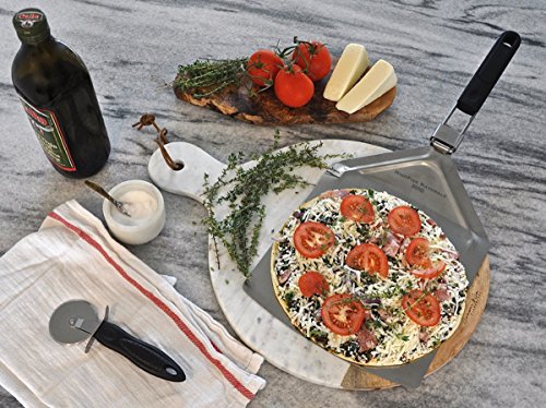 IT'S PIZZA TIME! EVERYONE LOVES PIZZA - ESPECIALLY FRESH HOMEMADE HOT-OUT-OF-THE-OVEN PIZZA! BUT A TRULY REWARDING PIZZA-MAKING EXPERIENCE IS ONLY ACHIEVABLE WITH QUALITY PIZZA TOOLS. With HighFive Naturals Stainless Steel Folding Handle Pizza Peel and BONUS Pizza Wheel Cutter, we've got your Pizza Game covered from counter to oven to table to plate. This quality pizza tool set will compete your pizza utensil arsenal and makes a great gift set for Christmas, Housewarming Parties and just about any occasion.
