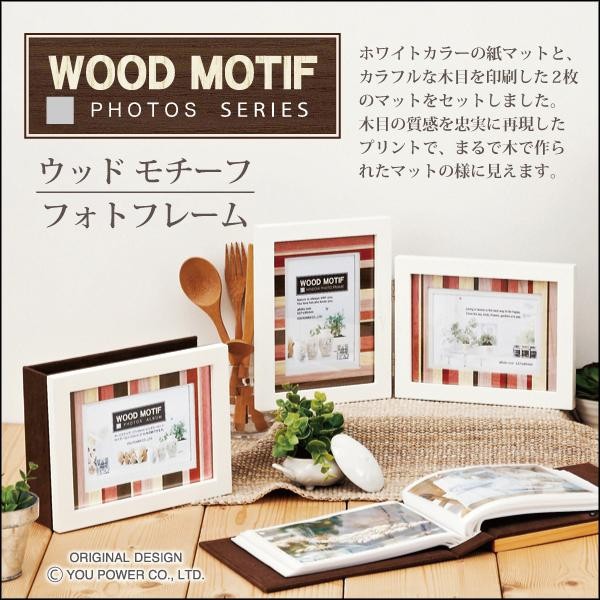 ホワイトペーパーマット、木目の質感を忠実に再現したウッドモチーフペーパーマットの2枚を木製フレームにセットしました。カラフルなウッドモチーフペーパーマットは、まるで木で作られたように見えます!アルバム部分には、ポストカードサイズ80枚収納可能! |