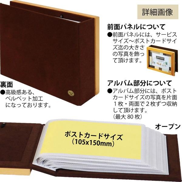 | 仕様 | ●卓上用 ●1mmホワイトペーパーマット・2mmウッドモチーフペーパーマット付 ●フロントのフォトサイズ:サービスサイズ(89×127mm)~ポストカードサイズ(105×150mm)1枚 ●ポストカードサイズ80枚収納可能 |
