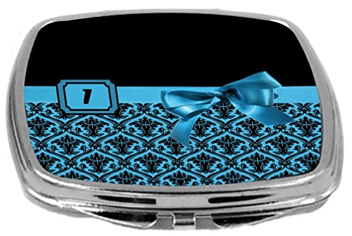 Rikki Knight Letter-I Monogram Damask Bow Design Compact Mirror, Sky Blue, 2 Ounce