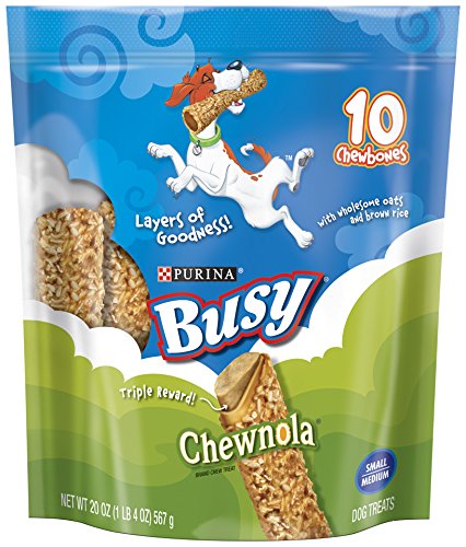 -. Feature : One (1) 10-Count Pouch - Purina Busy Chewnola With Wholesome Oats and Brown Rice Small/Medium Dog Treats / Made with wholesome oats and brown rice for tasty goodness / Center layer features real beef hide that offers a flavor dogs love / Triple-layered design invites your dog to lick, savor and chew / Created to feed a dog's natural instinct to chew