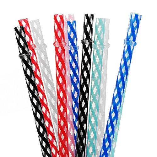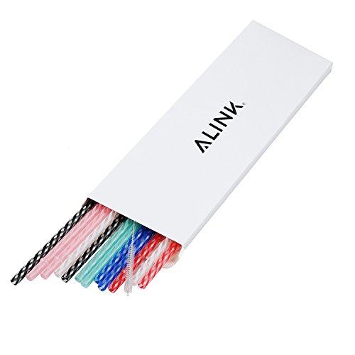 Includes 12 reusable straws, 6 cute strip colors, black, rede, pink, white, royal blue, light blue, 2 straws each color