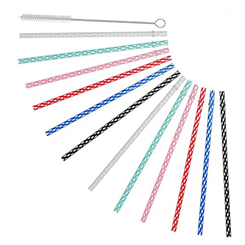 10.5" Long Reusable Plastic Replacement Drinking Straws for 30 oz & 20 oz Yeti, RTIC, Mason Jar, Starbucks, Tervis, OZARK Tumblers, Set of 12 with Cleaning Brush