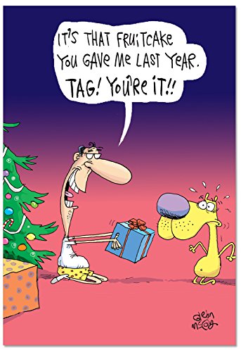 B2479XSG Box Set of 12 Fruitcake Tag Humorous Christmas Paper Cards with Envelopes