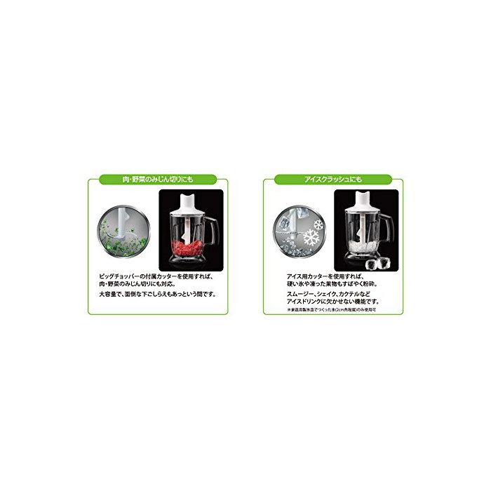 세트 내용 부속품:본체(모터 부분)고, 《부렌다샤후토》,거품기,빅 쵸파(chopper),아이스용 커터,전용 계량 컵,전용 스파《추라》