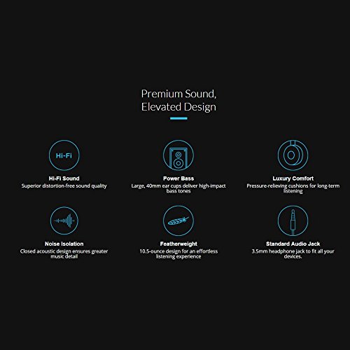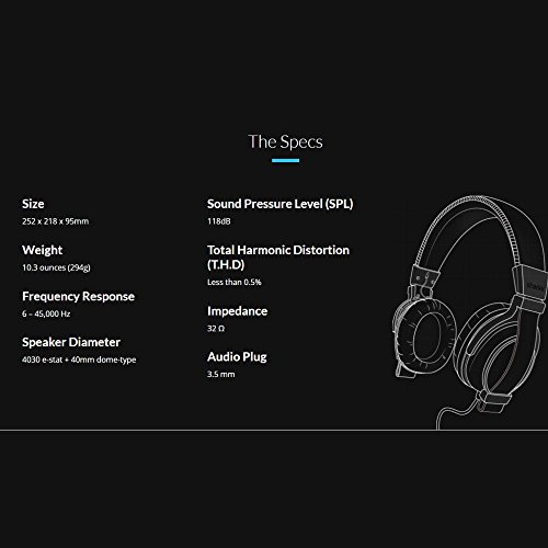 -. Feature : The most affordable hybrid electrostatic headphones with Hi-Fi sound, power bass and noise isolation / Noise isolation closed acoustic design ensures greater music detail / Power bass large, 40 mm ear cups deliver high-impact bass tones / Luxury comfort pressure-relieving cushions for long-term listening / Feather weight 10.5 ounce design for an effortless listening experience