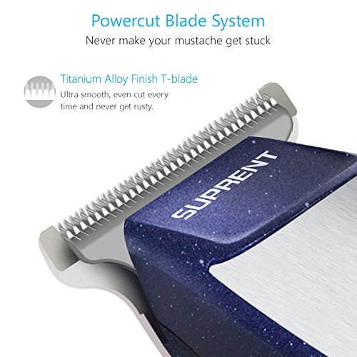 SUPRENT T-blade Beard Trimmer for Mustache, Stubble Trimmer and Sideburns Trimmer, Rechargeable Cordless and USB Cable, Blue
