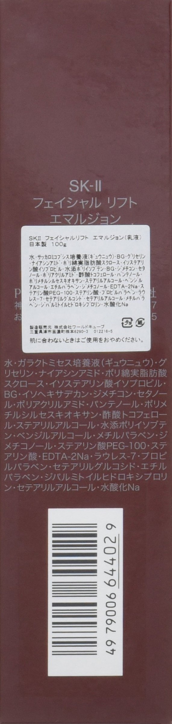 "Max Factor SK-II Facial Lift Emulsion 100 g" is a high performance emulsion containing collagen enhancer and SK-II Pitera.