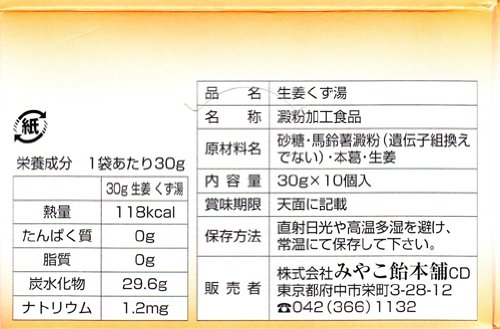 Per 30 g of 1: Energy 118 kcal, Protein 0 g, Lipid 0 g, Carbohydrate 29.6 g, Sodium 1.2 mg