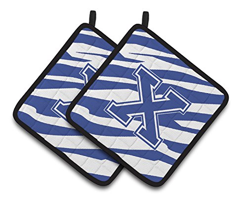 Caroline's Treasures Monogram Initial x Tiger Stripe Blue & White Pair of Pot Holders CJ1034-XPTHD, 7.5HX7.5W, Multicolor