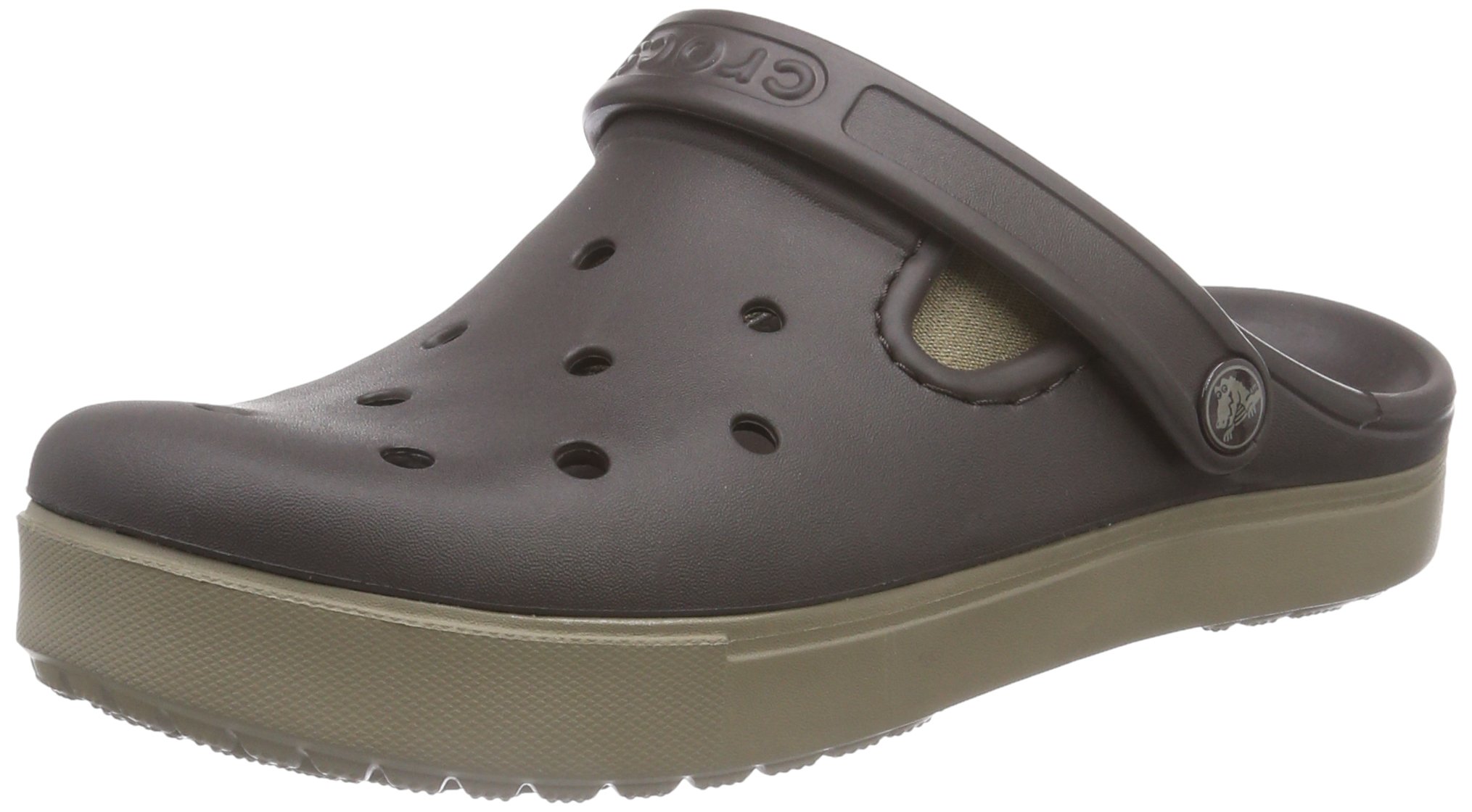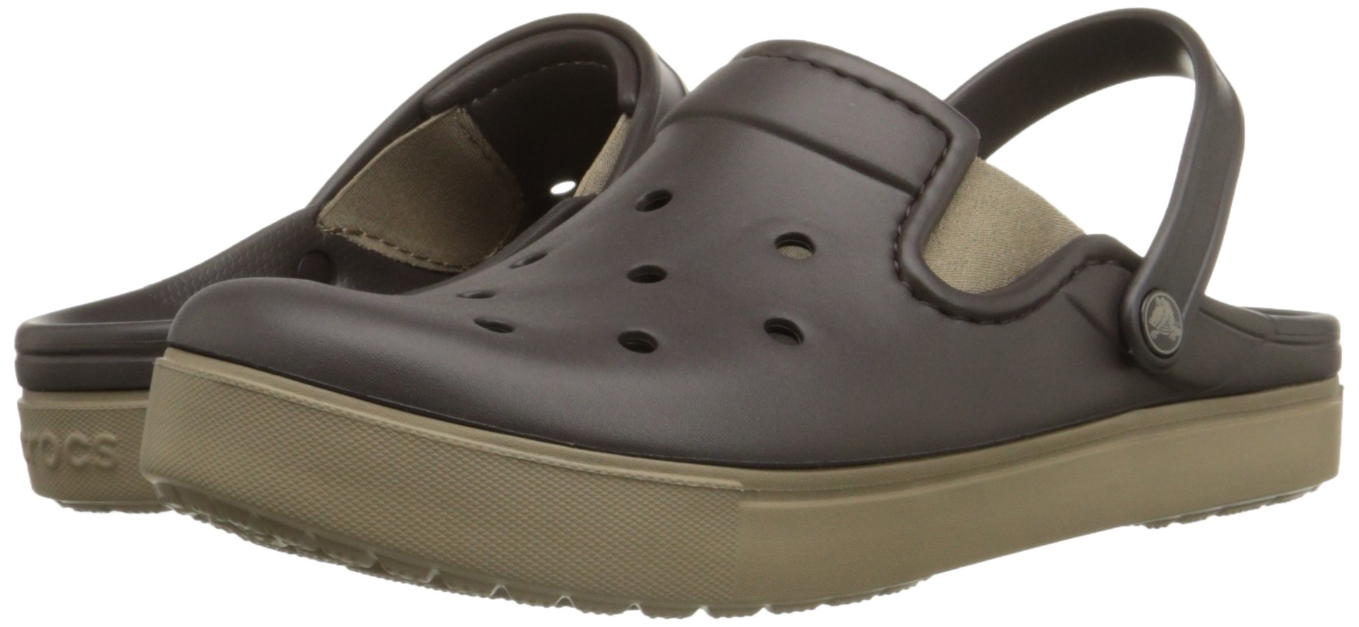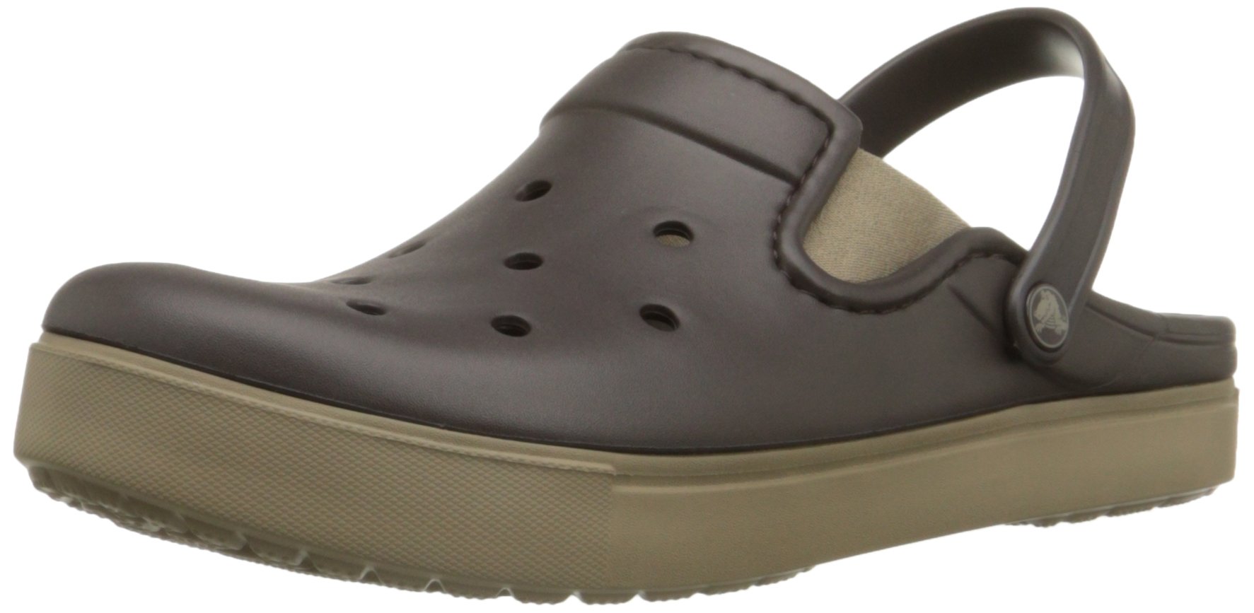 A vintage sneaker style appears in a comfortable clog unique to Crocs.