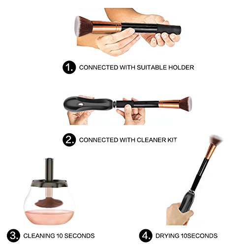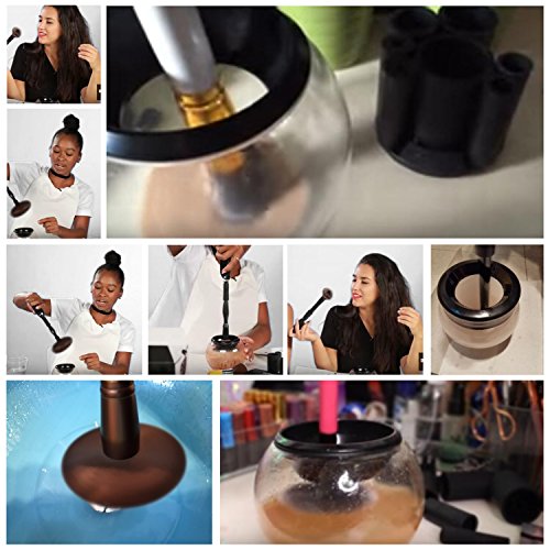 - EASY OPERATE THE MAKEUP BRUSH CLEANER.find the suitable collars and insert the cosmetic brush into the spinner,pouring some water and cleanser or baby shampoo into the bowl,dip and dunk the brush in the liquid,switch on the spinner to clean the brush,change the water clean again and lift the brush out of water spin the brush to dry it.90days free return warrenty.order makeup brush cleaner now.