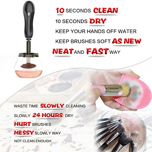 - SAVE YOUR TIME.just within 30 seconds,the brush cleaner tool auto deeply clean and dry your makeup brushes,soft and clean as new,professional recommend use the makeup brush cleaner kit cleaning your makeup brushes once a week to keep away from bacteria,cosmetic residue oil etc,ensure your skin health and effectively prevent pimples on your face,10seconds clean then 10 seconds dry,the electric kit will suprise you.