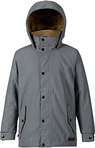 Studio : Burton Snowboards Publisher : Burton Snowboards Binding : Apparel Product Description You shouldn't feel like you've been robbed by pirates after outfitting for the winter transition. Save some in the treasure chest and score a timeless style with the boys' Burton Dubloon Jacket. Room-To-Grow sleeves ensure that this jacket survives the growth spurt, while zonal mapped Thermacore insulation brings the heat in all the right places. Body/Sleeves/Hood:70% Nylon, 30% Polyester, Body Lining:100% Nylon, Body And Sleeves:100% Polyester. 0