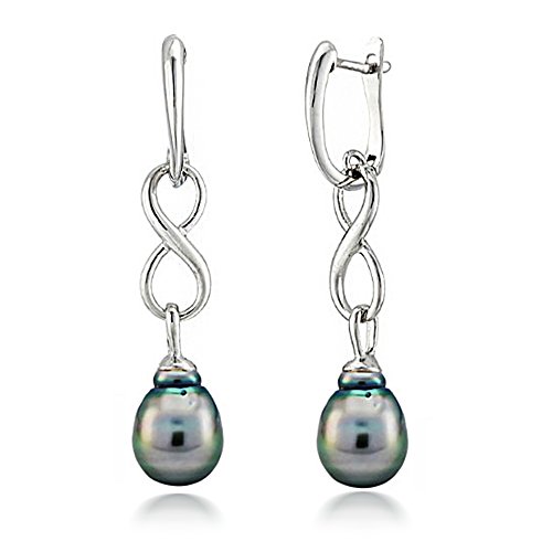 A Beautiful Sterling Silver 10-10.5mm Black Baroque Tahitian Cultured High Luster Pearl Infinity Dangle Earrings. Secured With a Hinge With Notched Post.
