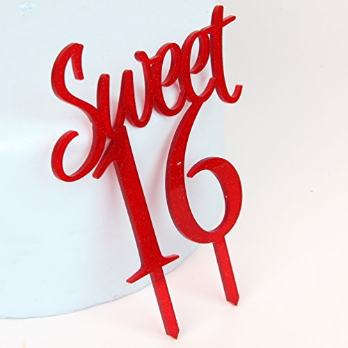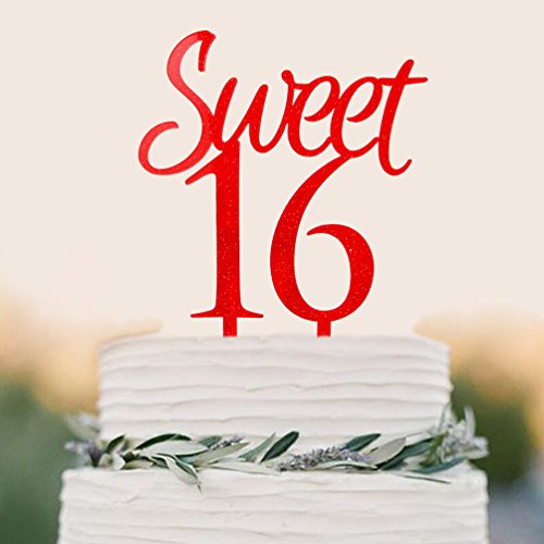 Red Glitter Sweet 16 Cake Topper - Happy 16th Birthday Party Decorations Supplies