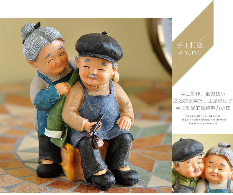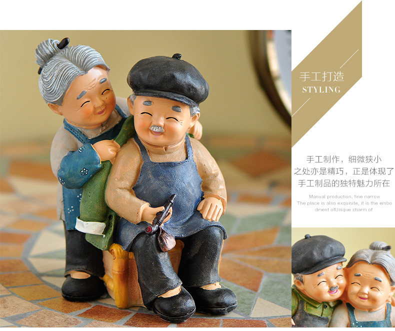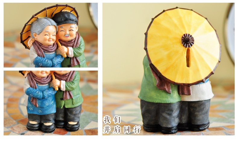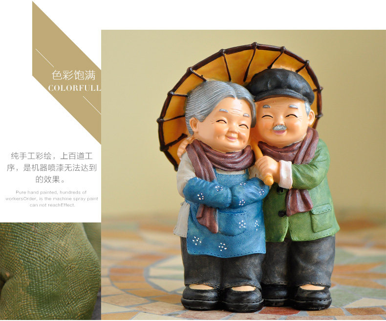 󰄬生日礼物风雨同行老人家居装饰品摆件 爷爷奶奶人物工艺品创意