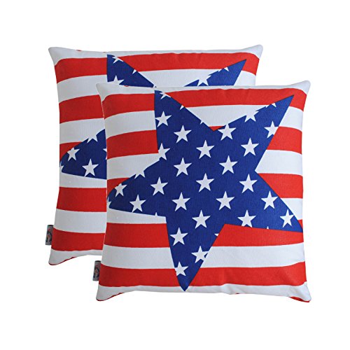 Throw Pillow Cover (Set of 2) for Sofa Couch 16 X 16 Inches USA National Flag Printed Cushion Cases Made of 100% Cotton Decorative Cushion Cover Collection by Value Homezz