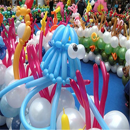 -. Feature : Quantity and material: 100 pieces high quality 260q latex magic balloons. / Assorted colors: latex balloons in red, orange, yellow, green, turquoise, blue, purple and pink give you the perfect color to make anything they may ask for. / Quality: sized 260q deluxe balloons are 29 to 30cm P.R.Ior to inflation for easy carrying; inflates to 120 to 130cm in size, which is ideal for balloon art. / Party favors: long and twisting to make many different animal designs. Great for parties, birthdays, clowns, holidays, and special occasions. / Note: blow them up with either air, or helium. Difficult to blow up with your mouth. A pump is highly recommend.