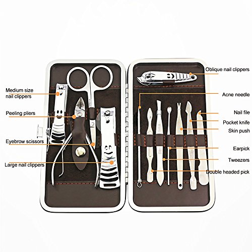 Gospire 12Pcs Nail Care Personal Manicure & Pedicure Set, Travel & Grooming Kit Stainless Steel Personal and Professional Use Ergonomic Different Tools...