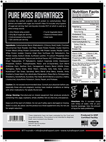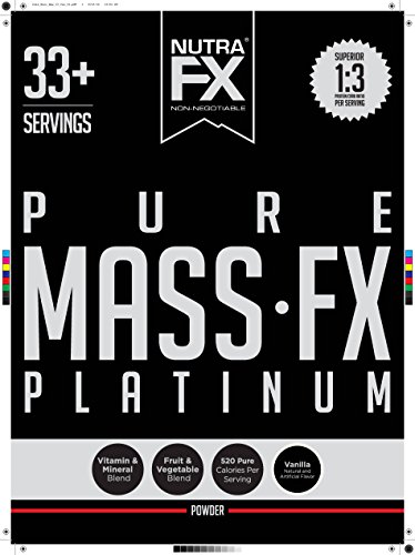 Studio : NUTRAFX Publisher : NUTRAFX Binding : Health and Beauty Product Description NutraFX Mass contains the perfect scientific ratio of protein to carbohydrates. PURE Mass is built with a diverse profile of hearty calories that come from fruits, vegetables and other complex carbohydrates. These calories come from foods such as blueberries, oats, sweet potatoes, alfalfa grass and acai berries so you can rest assure that your putting real calories into your body that will help increase size and strength. Built with a 3:1 carbohydrate to protein ratio, this mass gainer is sure to help pack on some Pure Size. As if this product wasn't good enough it also contains a time released protein formula that will aid in muscle recovery throughout the day. If you're looking to increase size and strength make sure you give PURE Mass a try in both Chocolate and Vanilla flavors. Your wont regret it. Its NON-Negotiable!!! 0
