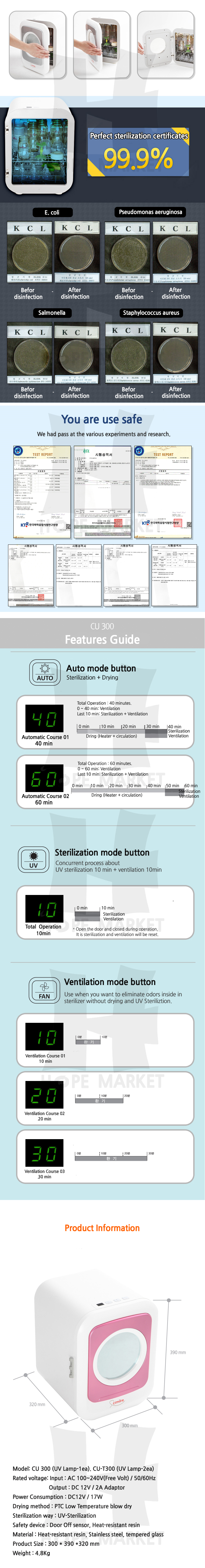 CU-T300 Model is Dual UV Sterlizer.