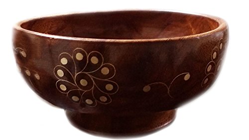 Handmade Wooden Bowl With Inlay Round Shape, Made of Sheesham Wood.