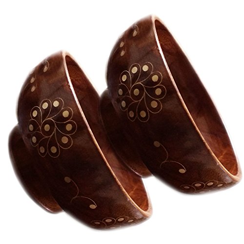Christmas or Thanks Giving Day Gift, Wooden Bowl with Gold Color Inlay Work and Stand at Bottom, Vintage Wooden Bowls, Brown Color Bowls, Serving Bowls - 2 Packs Salad/Pasta Bowl Set