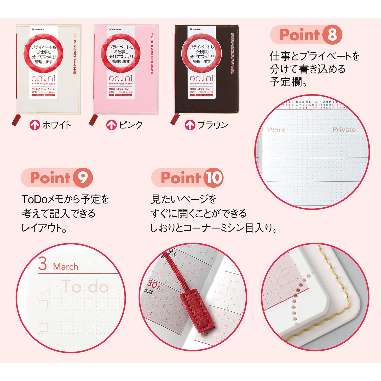 Bookmark and corner perforations that allow you to open the page immediately.