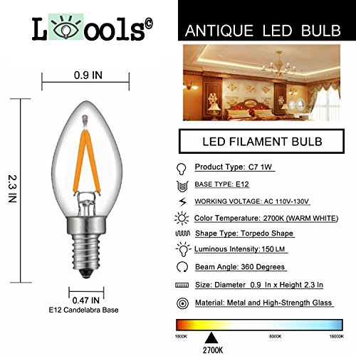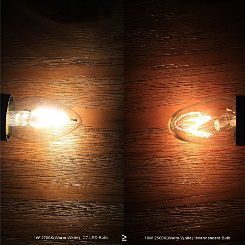 - Essential Attribute : LED Dimming Filament Candle,E12 Candelabra Base, 1W C7 bulb LED light replace 12-Watt Incandescent light bulb,Energy saving up to 90%.